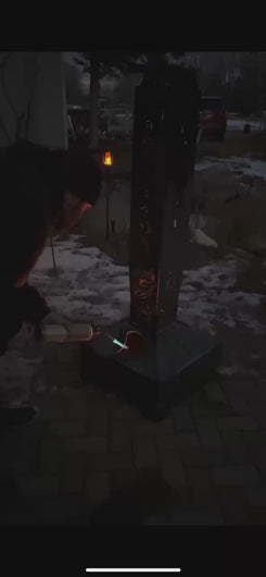 Turn your backyard into a showpiece with this handcrafted 5-foot steel smudge pot fire tower — made to order and fully customizable with your own name, phrase, or image cut into the metal.