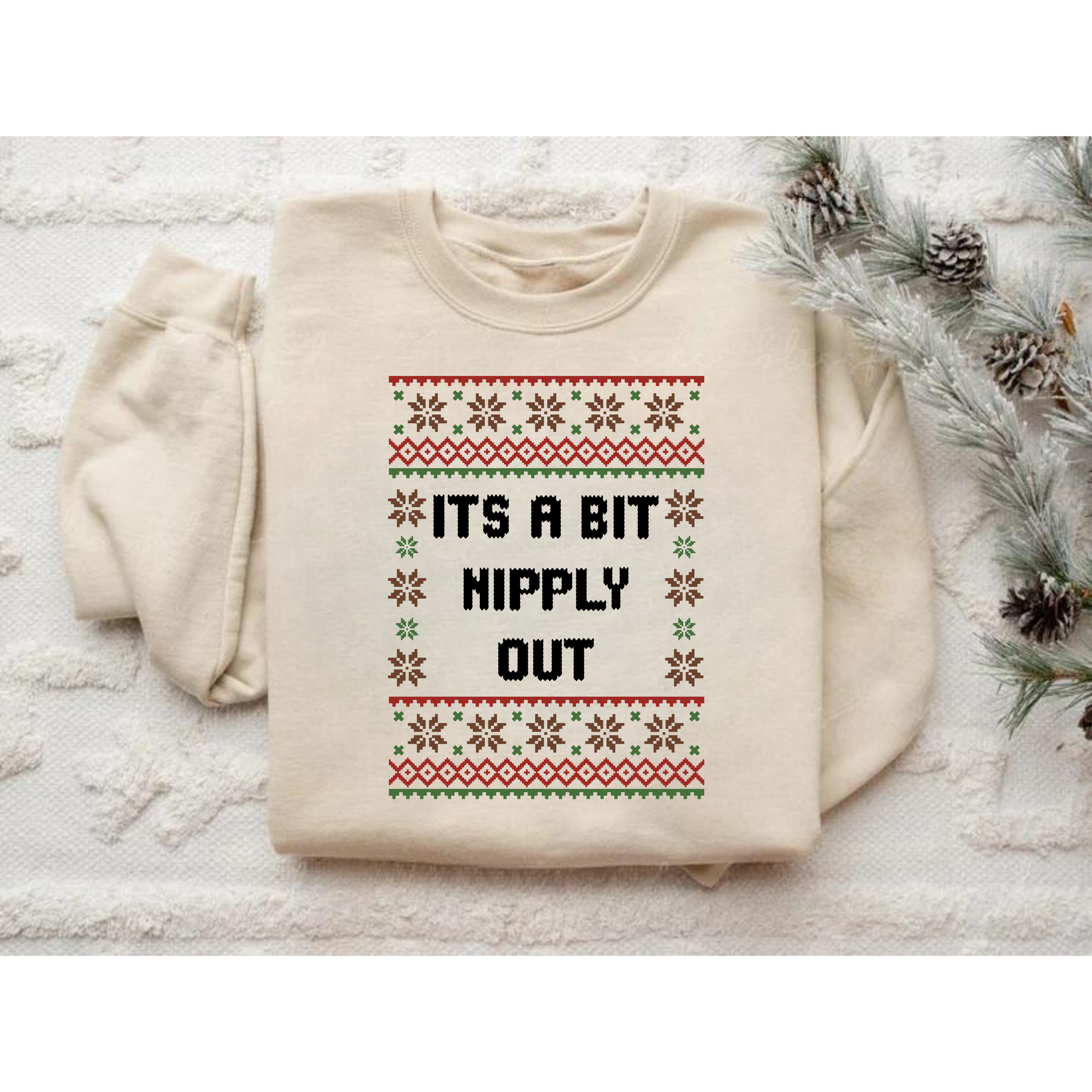 It's A Bit Nipply Out (words only) Christmas Vacation Crewneck Sweatshirt