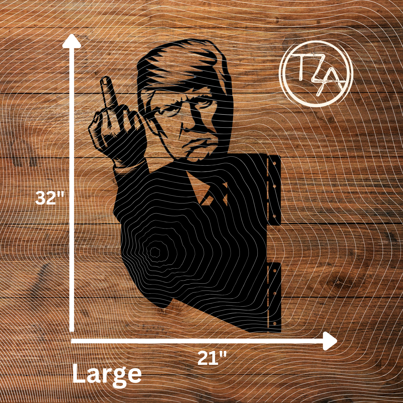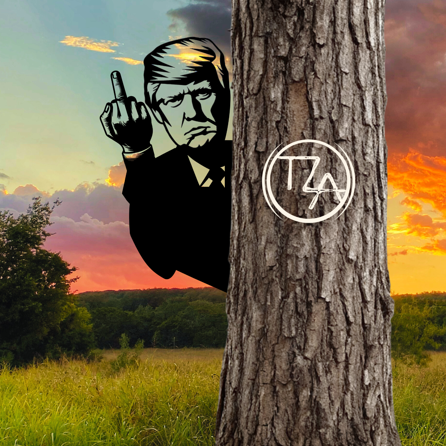 This unique President Trump sign is designed to mount to a tree or post. This sign creates the illusion of a President Trump hiding and peeking around a tree or post and saluting neighbors, friends, family, and others.