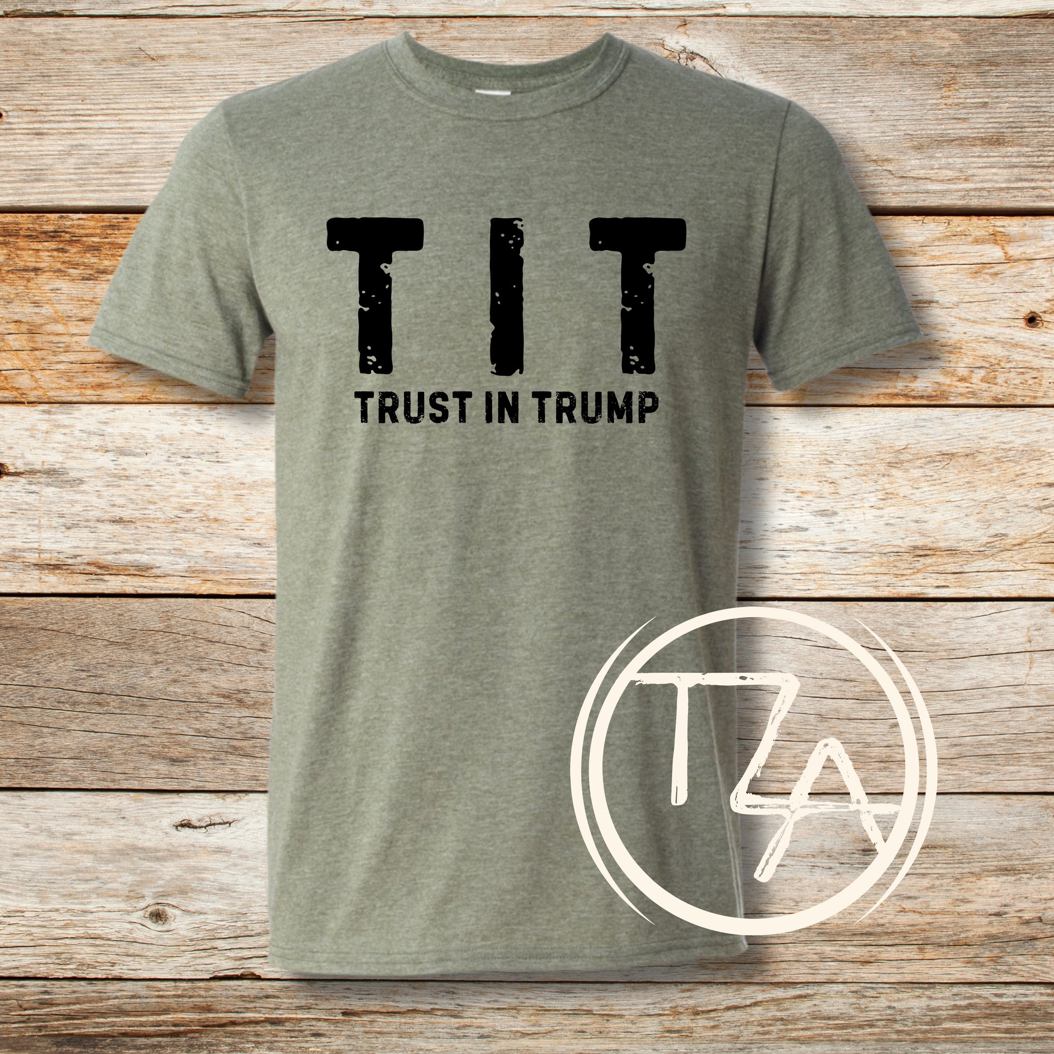 Trust In Trump TIT softstyle t-shirt is available in military green and sand colors.
